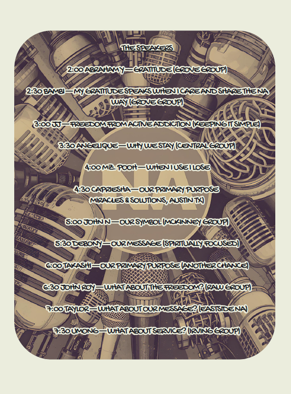 For a list of all events in the Dallas Area, check out the Dallas Area Service Committee website Events Page.